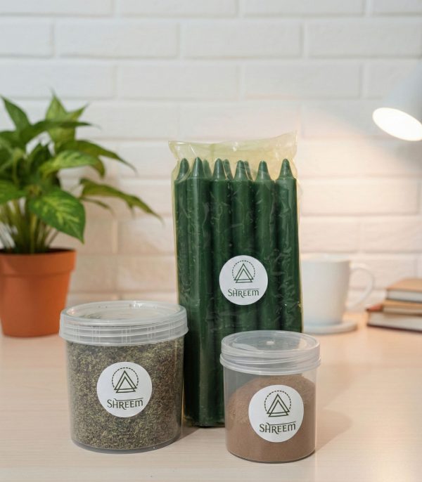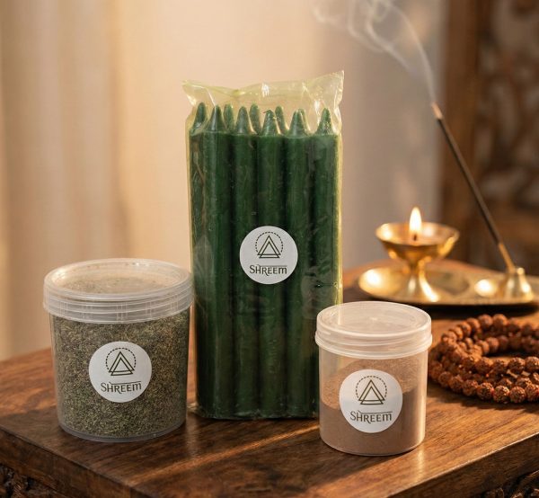 The Prosperity Kit: A ready-to-use wealth ritual set inspired by classical Lakshmi puja, designed to help you cultivate abundance, set focused financial intentions, and invoke auspiciousness with 10 green candles and a unique Prosperity Mixture. Perform structured prosperity sadhana at home or work using the kit’s spiritual tools and Lakshmi-Shreem mantra practice.